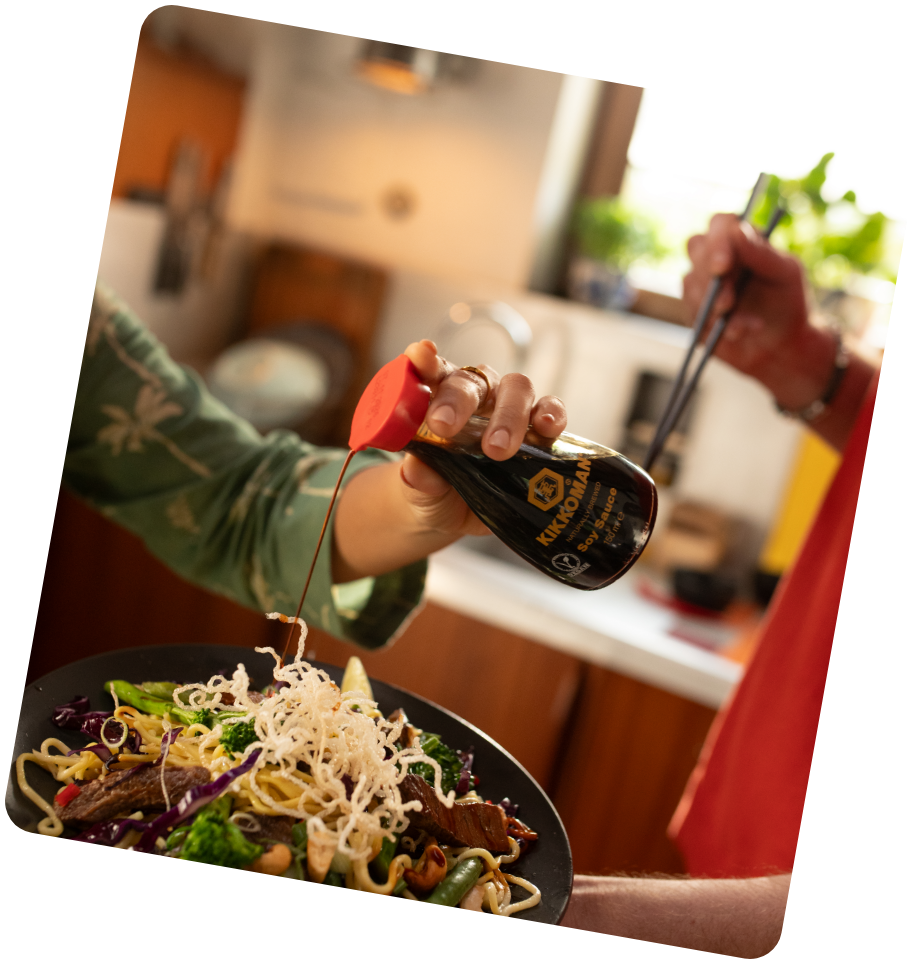 Au wok ou à la poêle. Avec de la viande, du poisson ou du tofu. Du riz ou des nouilles. Pour soi ou pour ses proches. Mais toujours avec la sauce soja Kikkoman. Et toujours un régal !